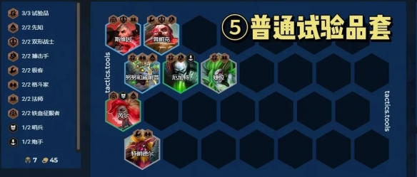 羁绊:3试验品、2先知、2双形战士、2搏击手、2极客、2格斗家、2法师、2铁血征服者
