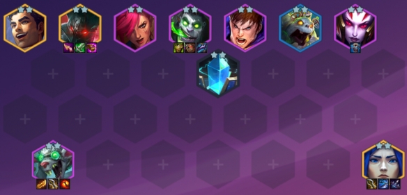 9人口可以下吸血鬼,蛇女上蔚,杰斯和铁男,如果主坦是盖伦,则保留两监察,可以不要蔚或铁男,看是否两星和有没有装备。