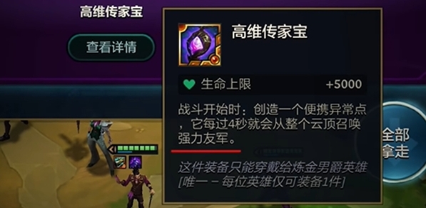 1、为所装备的炼金英雄提供5000血。