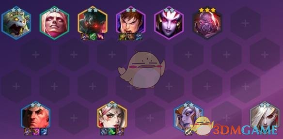 主c乌鸦搭配莫甘娜,吸血鬼,努努,蛇女,乌鸦,盖伦,蜘蛛,妖姬,铁男组成5黑玫3法师2统领2监察2格斗2征服2双形2先知