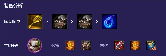 艾克必备正义拳、泰坦,其余装备给饮血、正义拳、中娅。