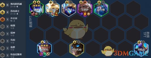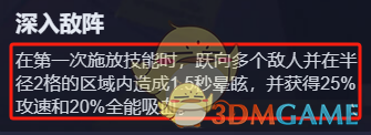 带群控的情况优先站在靠近敌方C位的那边,跳过去的同时2格内有机会眩晕敌方后排,带控制的刺客=超模,并且提供20%的全能吸血,后续饮血甚至也能换成无尽或者双泰坦。