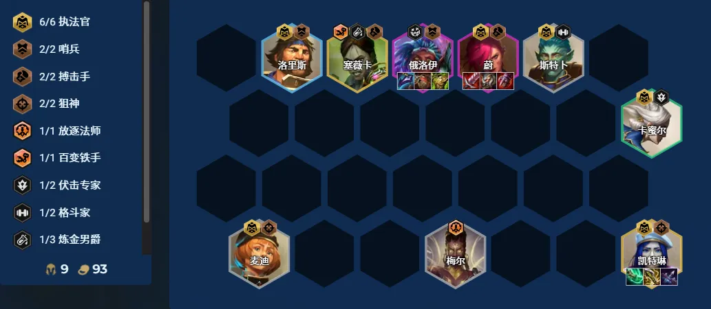 执法蔚今天在金铲铲中热度小幅度提升,但这套阵容建议在节奏较慢的对局中考虑,特别是9人口后搭配6费卡梅尔或维克托,对阵容的上限提升巨大。