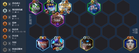 标准阵容:4外交官 4监察 2炮手 2法师