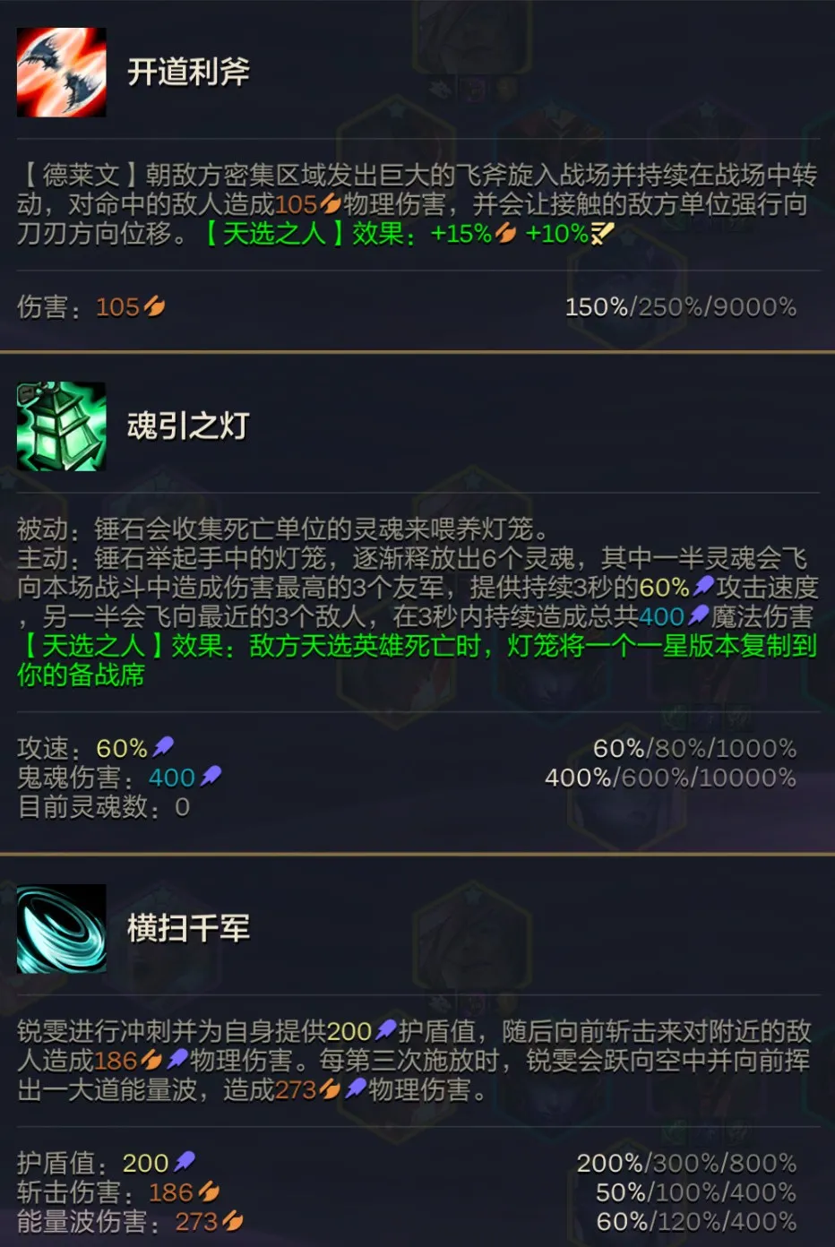 阵容里有永恩破甲,锤石、希维尔加攻速,宗师高额增伤,德莱文只要出高攻击力装备就能一个技能秒杀全场,然后搭配德莱文武财神效果,美美爆钱,上10轻松追三星5费。