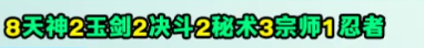 8天神、2玉剑、2决斗、2秘术、3宗师、1忍者