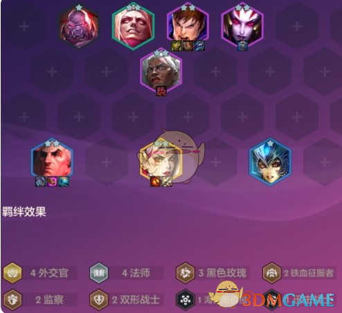 外交4法乌鸦是外交体系综合最强,对装备和质量要求也是最低的,乌鸦和妖姬技能都能打到后排,经常对方前排还在,后排已经被乌鸦和妖姬杀完了。异变推荐优先拿盖伦坦度异变,其次拿后排增伤或加属性的异变。