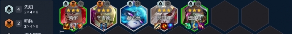 八级常规还是开4哨兵4先知挂任意六费卡,如果没有6费,可以挂个小炮给团队加攻速。后期上限就是开出6先知提供回复,这在版本更新6先知后,高分段比较常见的赌狗吃分阵容。