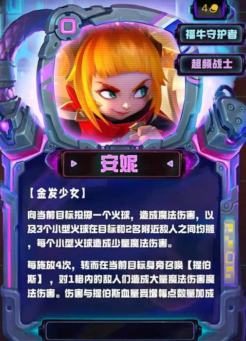 每施放4次,转而在当前目标身旁召唤【提伯斯】,对1格内的敌人们造成大量魔法伤害魔法伤害。伤害与提伯斯血量受增幅点数量加成
