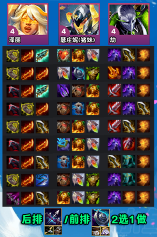 3、在4-1找到4堡垒+猪+泽丽+劫,将德莱文、加里奥、贾克斯等低费卡升2来提战斗力。