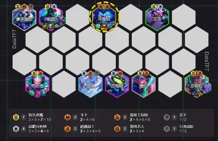 这套整容刚需恶魔转,因此我们羁绊可以优先选择恶魔转,或是提供铲子的羁绊,来凑齐7恶魔,后续可以选择装备或者战力符文。