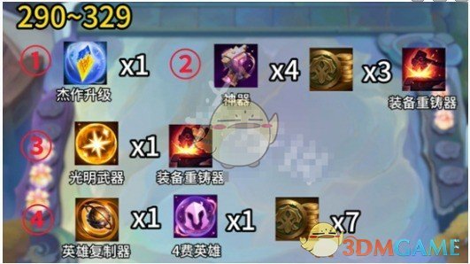 1、奖励一览:1个杰作升级/4个神器+3金币+1重铸/1光明武器+1重铸/1妮蔻+1四费+7金币。