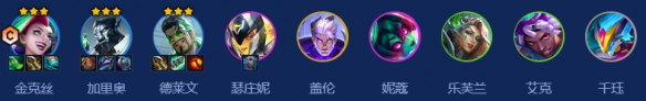 金克丝、加里奥、德莱文、猪妹、盖伦、妮蔻、妖姬、艾克、千珏