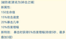 新效果:暴击会获得5%伤害增幅,持续5秒,最多叠加3层