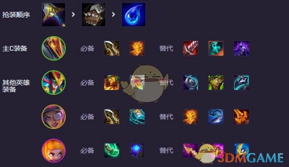 三源装备为脉冲稳定器时,龙女+蜘蛛替换成武器+猪妹。豹女/龙女/猫都是随缘三的,狗子三星后速升人口开5超频。开局有任一二星的三魔装+狗子+一件成装可以升人口走连胜,否则连败开局拿装备,优先拿大剑和拳套、水滴。