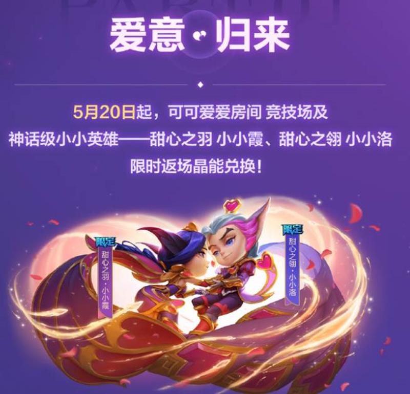 可可爱爱房间竞技场、甜心之翎小小洛及甜心之羽小小霞限时返场晶能兑换!