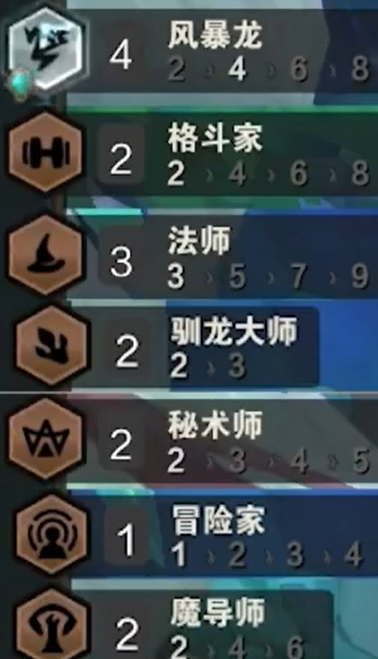 4风暴龙、2格斗家、3法师、2驯龙大师、2秘术师、1冒险家、2魔导师