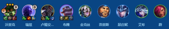 狼人、瑞兹、卢锡安&赛娜、布隆、金克丝、洛里斯、猪妹、艾希、蔚