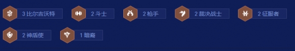 3比尔、2斗士、2枪手、2裁决、2征服、2神盾使、1暗裔