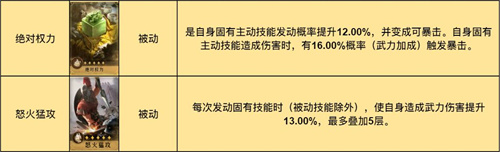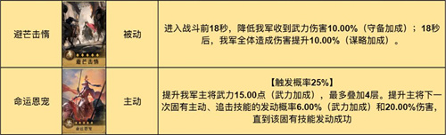 固有技能天下归心可使主将立即释放一次固有主动技能,并且提升该技能伤害。