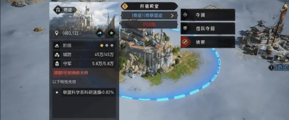 当奇迹城防值被其他联盟拆除成0后,奇迹将会陷落,无法对奇迹建造和科技进行任何操作,对应的奇迹科技效果也将被冻结,需尽快组织盟友夺回联盟奇迹。奇迹被陷落或者被夺回后,将进入一段时间的免战期。