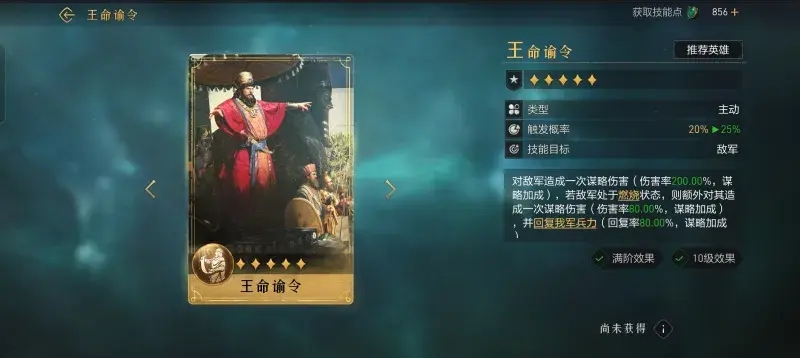 在重返帝国游戏中王命谕令是最近上线的一个全新传说技能,技能可以打出燃烧效果,对敌人造成大量的异常状态伤害。这个技能非常适合打异常状态伤害的队伍,下面小编给大家带来重返帝国王命谕令使用攻略,感兴趣的玩家一起来看看吧。