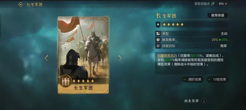 技能回复兵力并高概率清除我军Debuff。因法系阵容大部分都带有对敌Debuff技能,因此适合法骑,法弓,法剑阵容。
