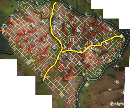 所以这条线的对策是开局与家门口的同行结盟,或直接开一个分盟抢占先机,避免争端,争取快速过河。如果没法结盟也不是分盟,那要准备好开局血战。