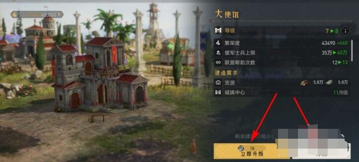 以上就是小编整理带来的《重返帝国》大使馆升级方法介绍。更多精彩内容,请点击关注手游网,小编将持续为您更新!