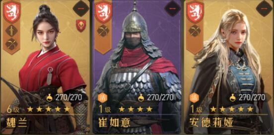 在主线任务进行到5-7章的样子,我们就可以开始考虑开荒阵容的事情了,当前你手里应该有了魏兰、崔如意和康斯坦丁/琼恩(直接氪金招募的,建议选康斯坦丁)。