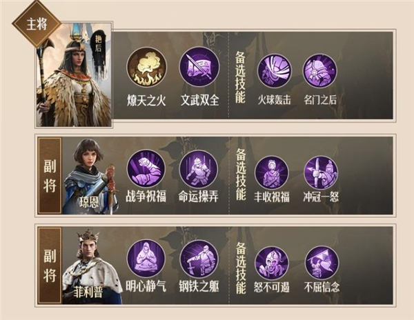 阵容评价:该阵容比较适合开荒起步,3位英雄都是可以免费获得的,发展方面也比较广。