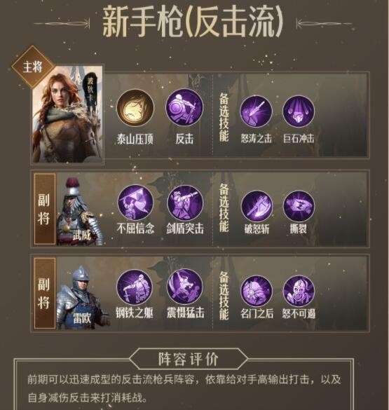 以上就是小编整理带来的《重返帝国》波狄卡反击流新手枪阵容搭配推荐介绍。更多精彩内容,请点击关注手游网,小编将持续为您更新!