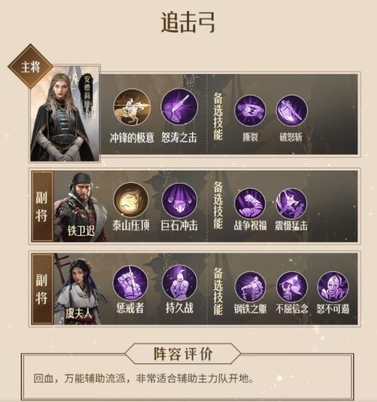 以上就是小编整理带来的《重返帝国》追击弓阵容搭配推荐介绍。更多精彩内容,请点击关注手游网,小编将持续为您更新!