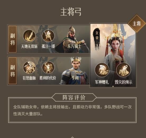 以上就是小编整理带来的《重返帝国》弓兵阵容搭配大全介绍。更多精彩内容,请点击关注手游网,小编将持续为您更新!