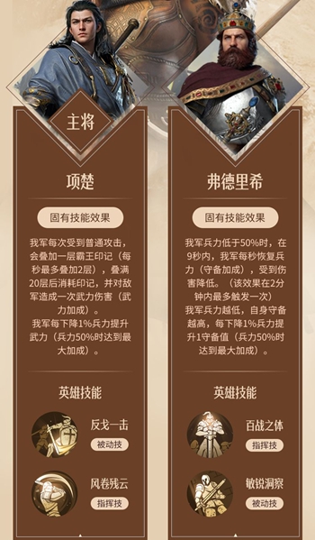 3、另外50%兵力还可以触发两外两个副将的固有技能,稳定输出。