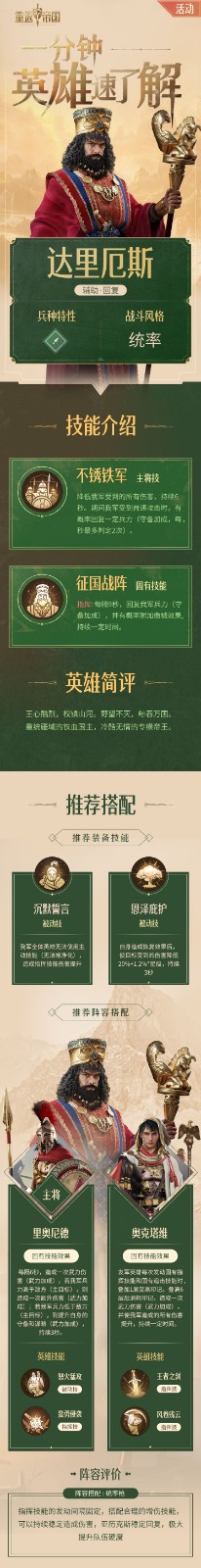 以上就是小编整理带来的《重返帝国》达里厄斯技能及阵容搭配推荐介绍。更多精彩内容,请点击关注手游网,小编将持续为您更新!