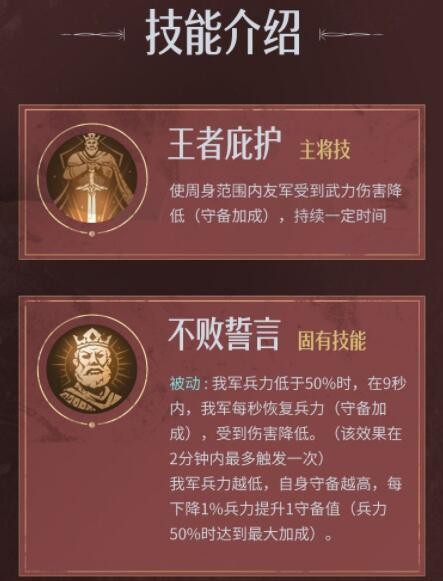 被动:我军兵力低于50%时,在9秒内,我军每秒恢复兵力(守备加成)