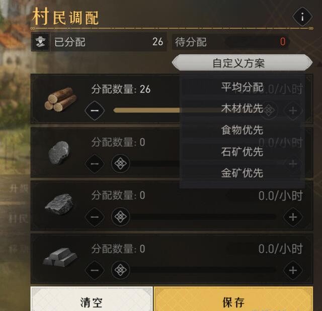 建设居民房舍后,可以调配里面的村民,按需生产四种材料。