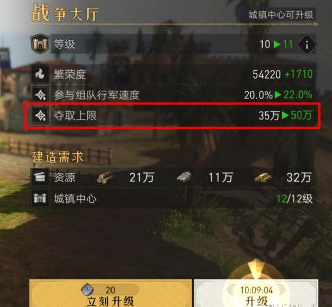攻打其他玩家可以掠夺大量资源,每天有一定上限。在城镇中心12级后,可以建造战争大厅,提升每日掠夺上限。