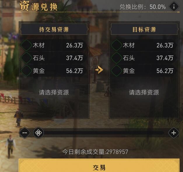 领地建设市集后,可以在其中置换木材、石头和黄金三种资源,解决短时间内急缺的少量资源。
