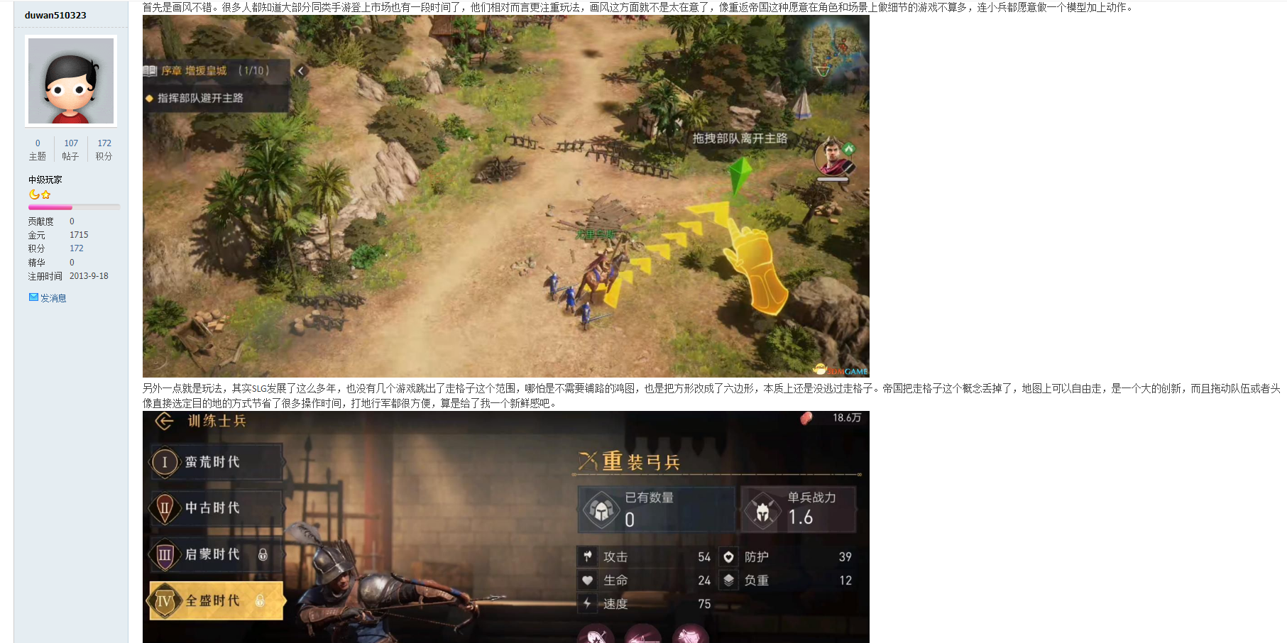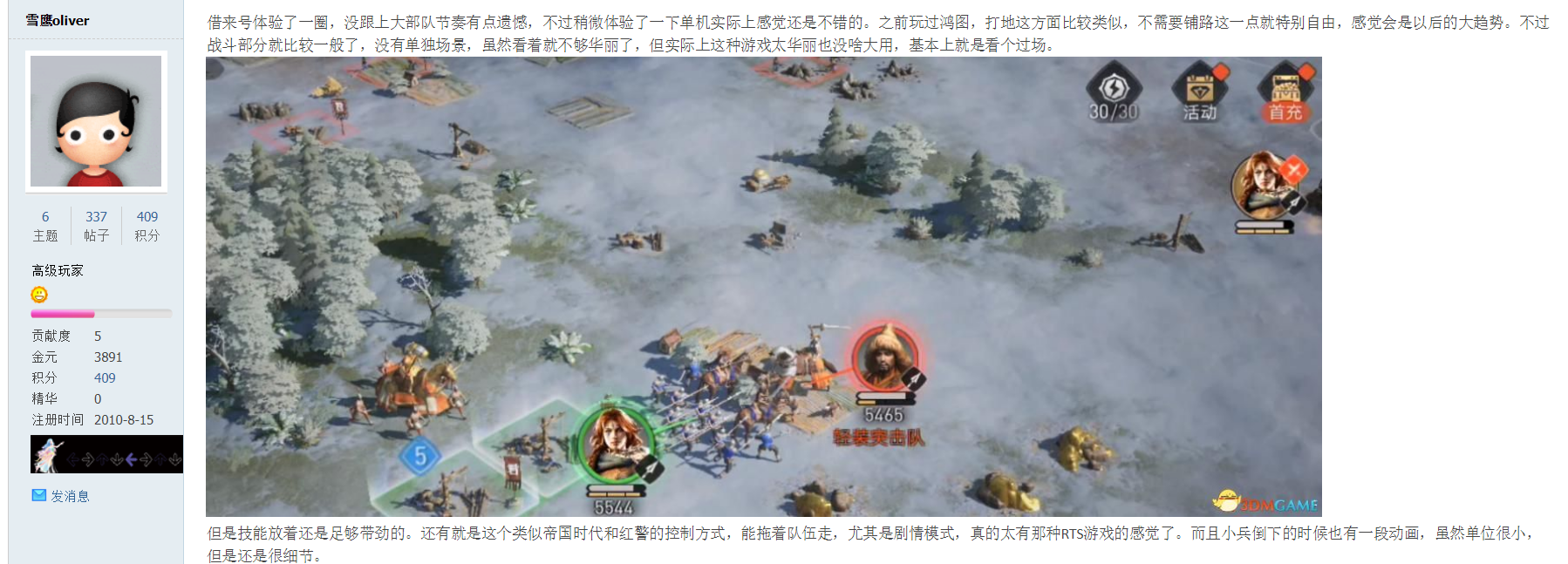 论坛ID为雪鹰oliver的玩家认为《重返帝国》的控制方式太有RTS那味了~