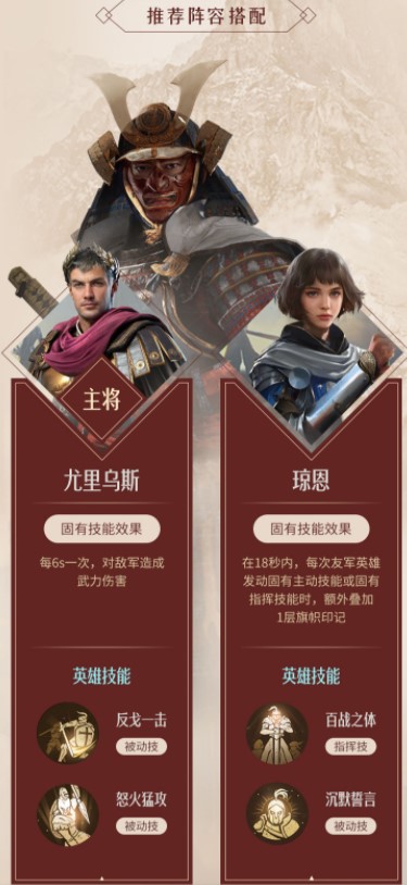 《重返帝国》游戏中影武者阵容搭配推荐影武者+尤里乌斯+琼恩,那么今天小编就给大家介绍一下重返帝国影武者阵容搭配推荐,有需要的小伙伴不要错过了。