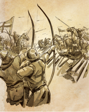这一战中,他创造性地使用了长弓+拒马的战术,愣是带着6千残兵,大败法军骑兵2万多人,成为了整个战争史上以少胜多的经典,更是以弓箭手对抗重装骑士的教科书!