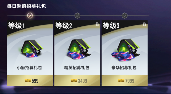 商城每日超值(限时)招募礼包:分为三个等级,需依次购买。以折扣价获取大量的招募券,能快速地提升玩家的阵容强度。