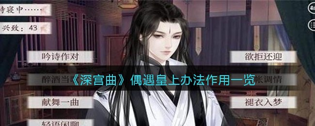 《深宫曲》是一款高自由度养成经营宫斗类剧情游戏,发表于网易旗下的易次元平台。游戏中怎么偶遇皇上呢?很多玩家可能并不清楚,下面这里下载站小编就给大家带来了《深宫曲》偶遇皇上办法作用一览,感兴趣的速来围观吧!
