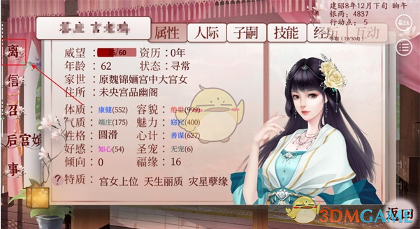 玩家可以自己选择自己的出身,或高贵或平庸,可以是初入宫闱的秀女,也可以是在冷宫中艰难求存的弃妃。