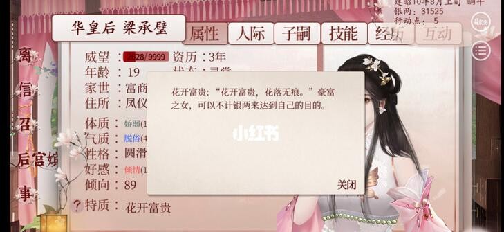 4、另外,梁承璧每升一份都会送钱,钱越高,但有女主提拔她是没有钱拿的,只有自然威望增长的升位份才有钱,所以我最喜欢给她美言涨位分,然后升到头再搞事情把她拉下来然后美言变白。