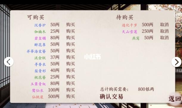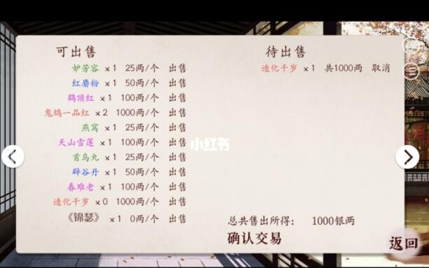 当你不停的买进卖出以后,买价1000会逐渐变成500,卖价1000会变成1300!买卖一次,差价800,分分钟资产上万!而且这样刷完以后月姑姑好感直接100,所有的东西都便宜了!