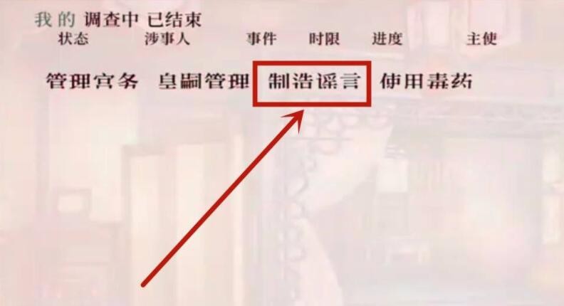 第2步:造谣对象选择为“楚欢”,造谣内容选择为“欺凌宫人”。
