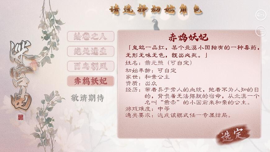 4、走正常宫斗线的话名字可以设置成“魏锦婳”会有一个固定的亲戚“魏锦书”位份随机(要刷位份记得存档)